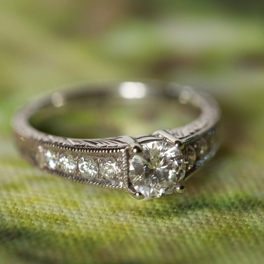 0.75ct Princess Cut Solitaire Diamond Engagement Ring with Diamond Set Shoulders